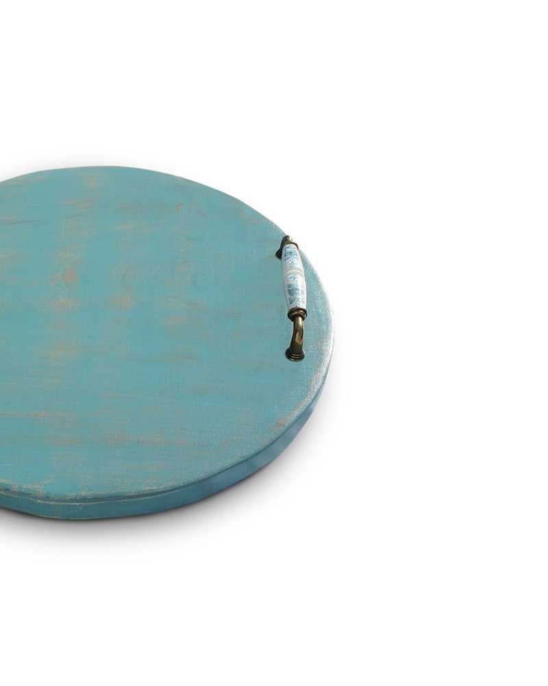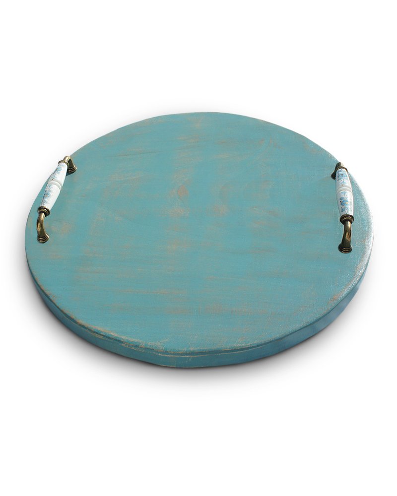 Кръгъл поднос от възстановен дъб и с керамични дръжки