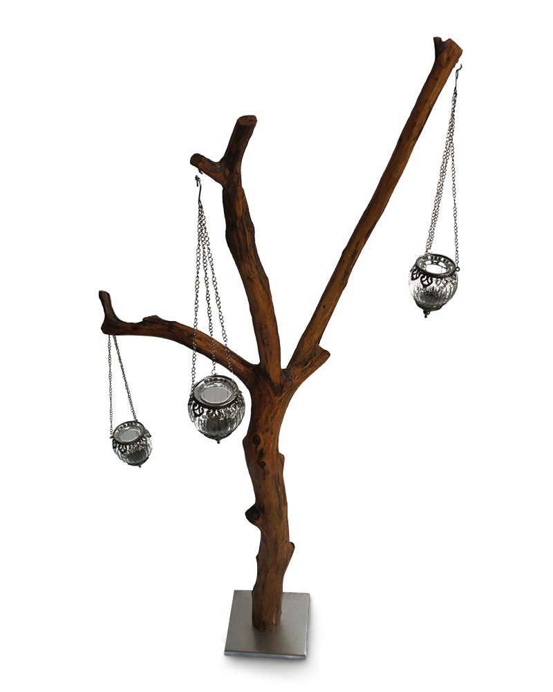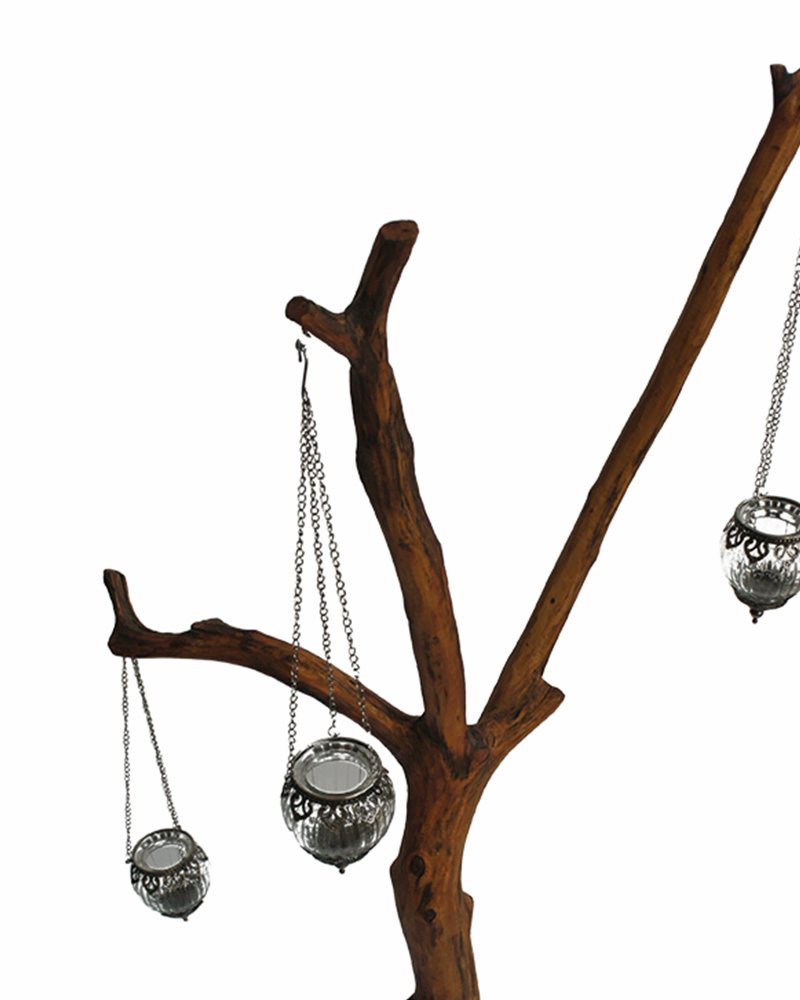 Висока дървена стойка за фенери от габър с три разклонения